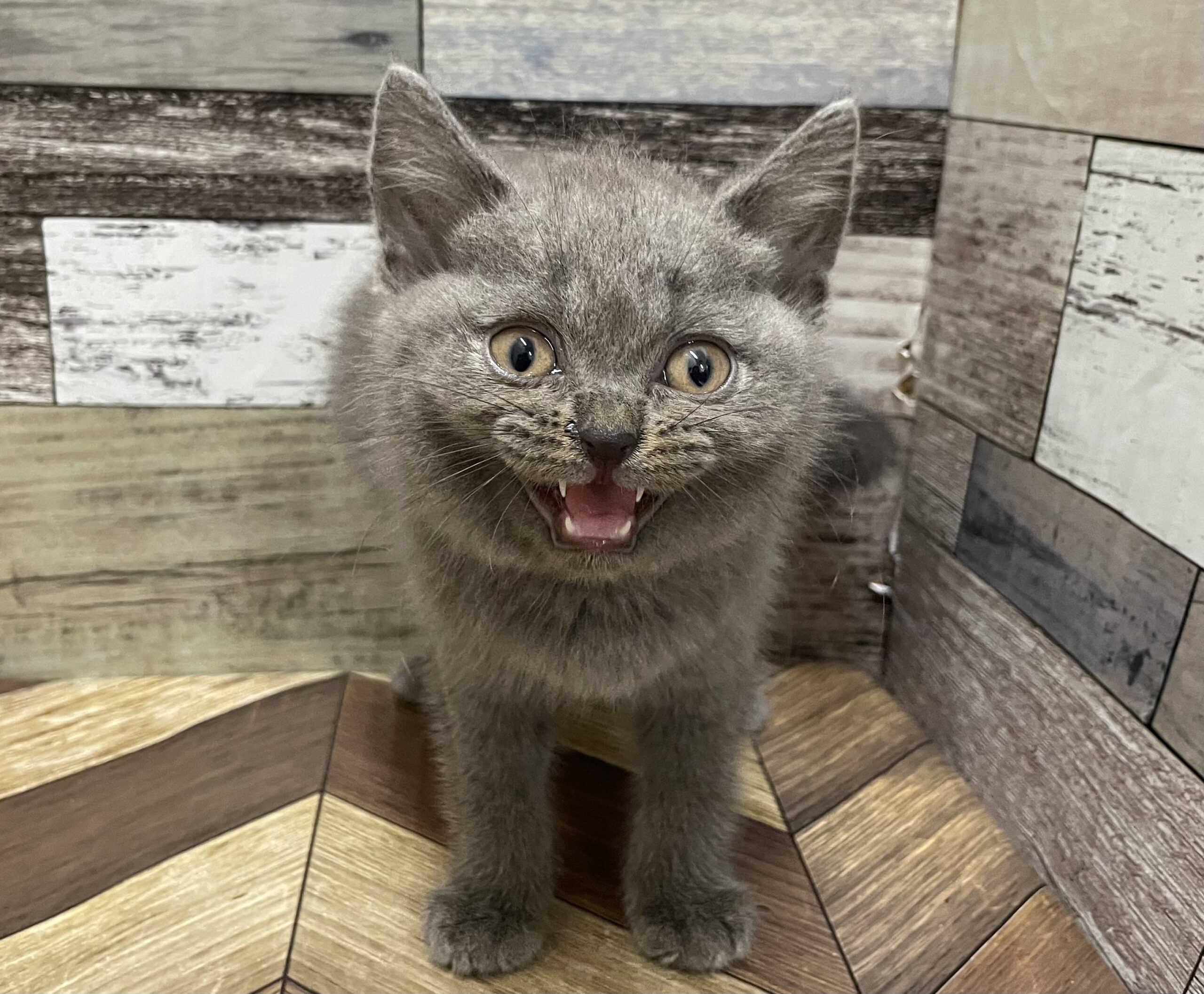 お問い合わせ番号 002-C00050 品種 ブリティッシュショートヘアー 毛色 ブルー 性別 女の子 誕生日 2025年7月28日 出生地 兵庫県 ワクチン接種日 1回目 R7年9月27日 2回目R7年10月31日