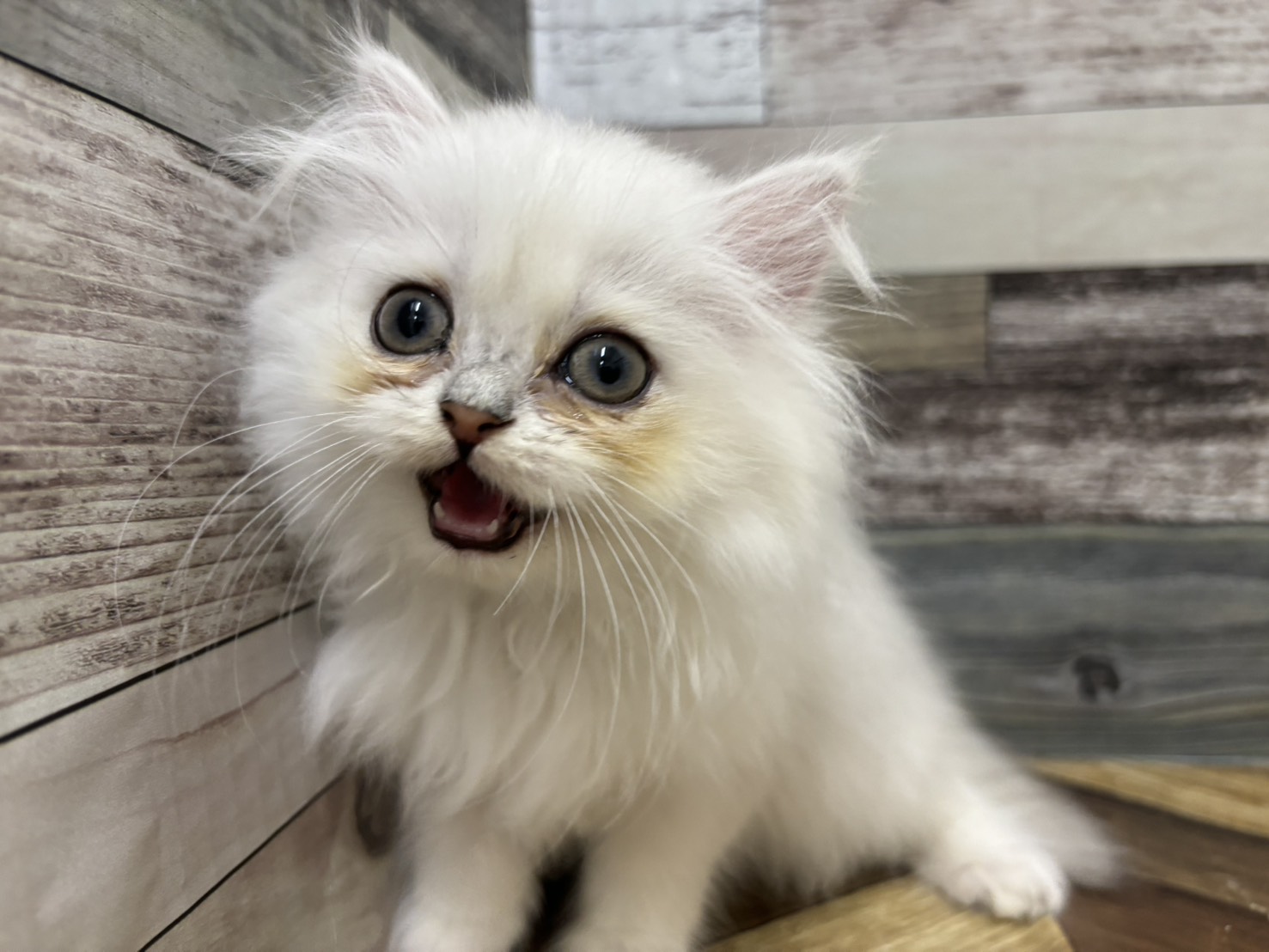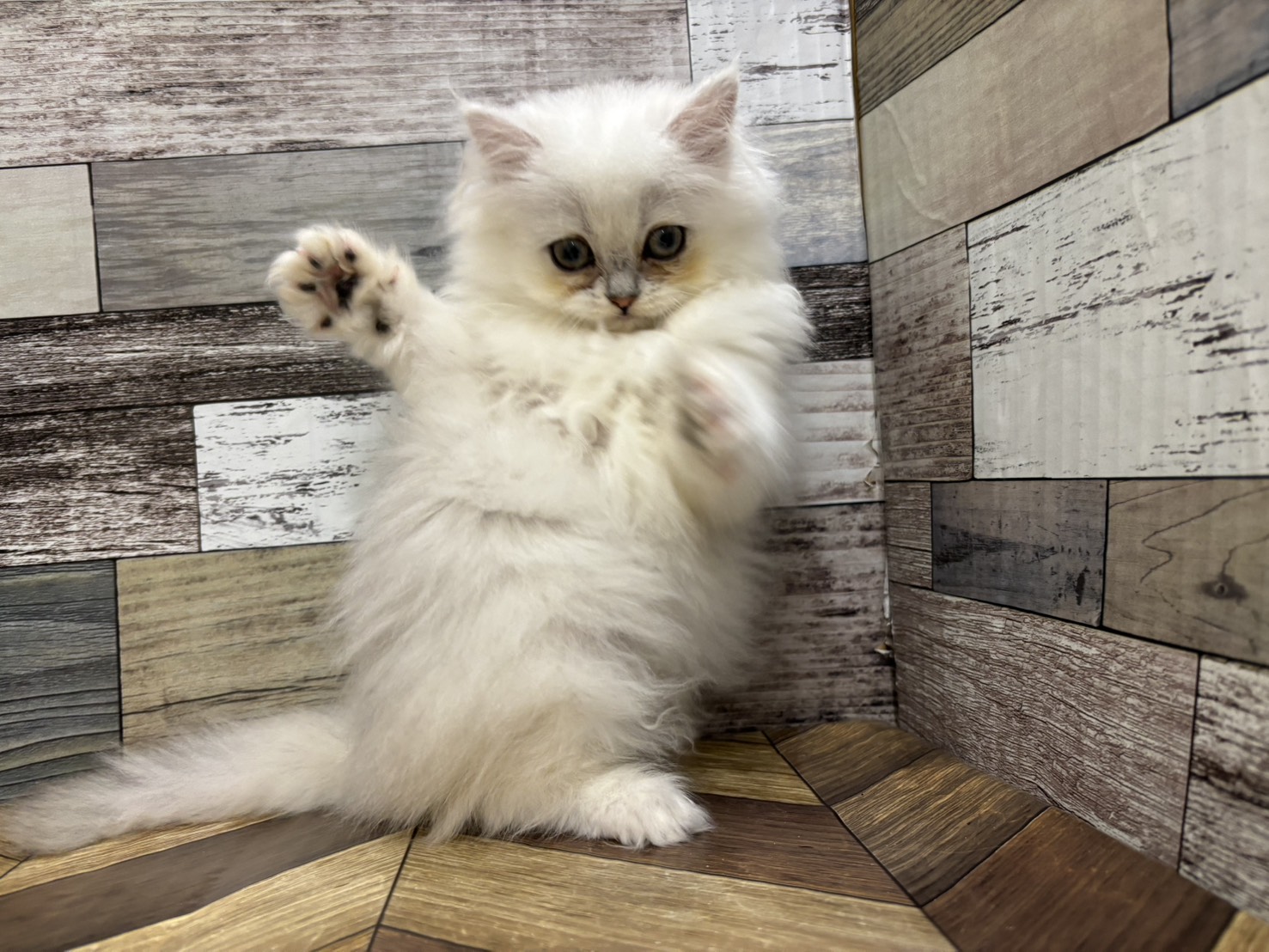 お問い合わせ番号 002-C00052 品種 ペルシャ 毛色 チンチラシルバー 性別 女の子 誕生日 2025年9月10日 出生地 愛知県 ワクチン接種日 1回目 R7年11月7日 生体価格(税抜) ¥188,000 生体価格(税込) ¥206,800 あんしんパック ¥40,000(税込 ¥44,000) フードセット ¥18,500(税込 ¥20,350) ワクチン代金 2回目以降の混合ワクチン代金 ※写真は入店当時のものである場合がございます。