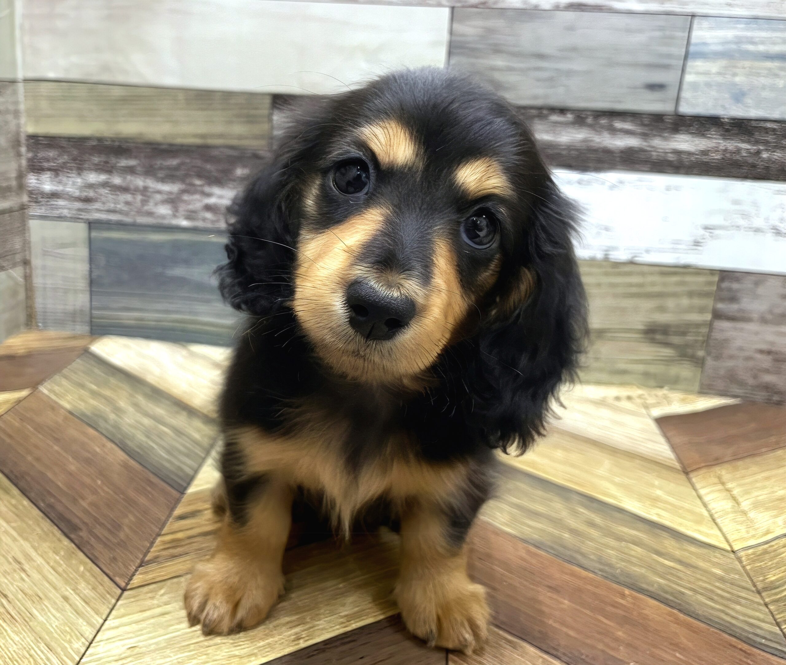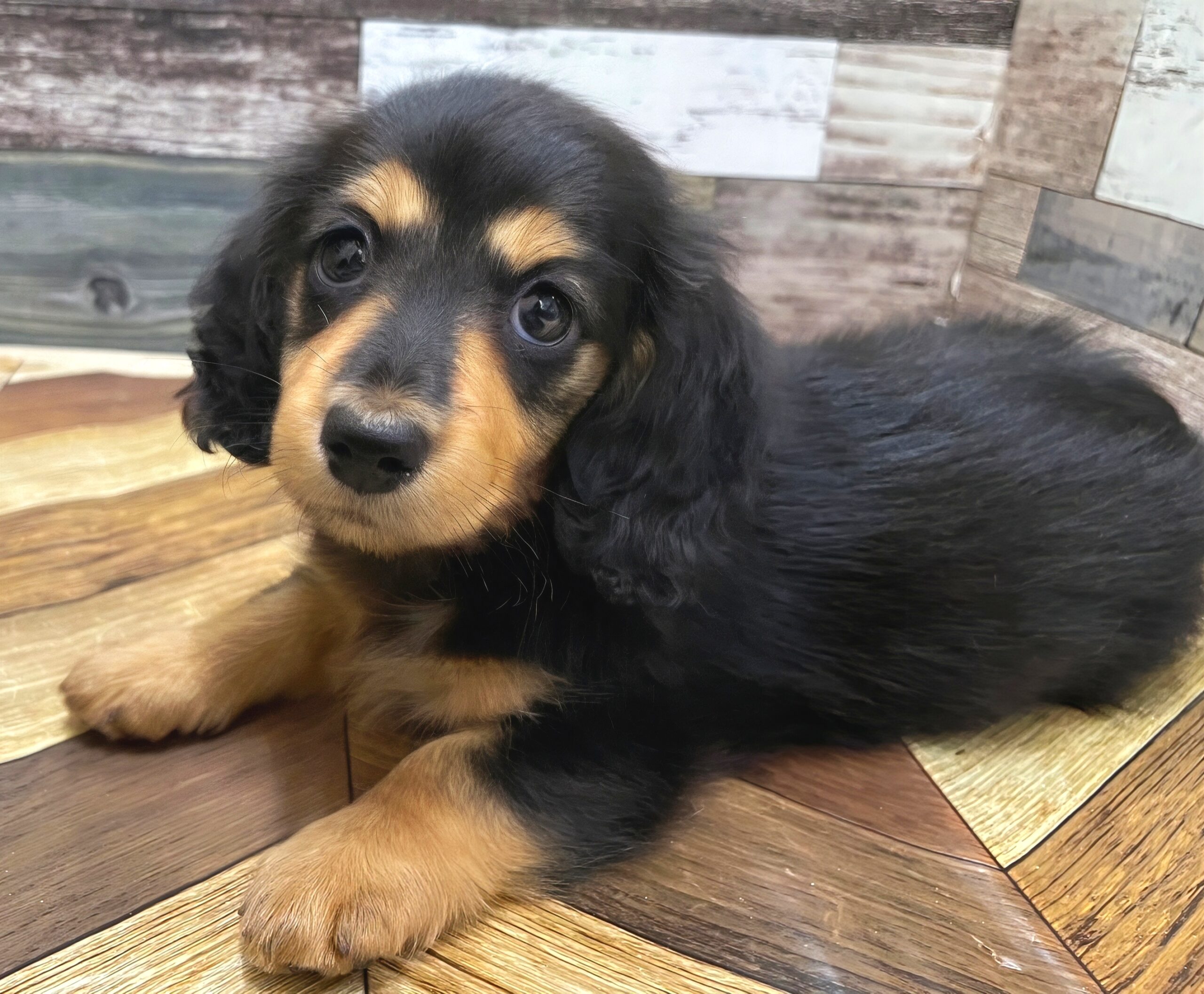 お問い合わせ番号 002-D00149 品種 ミニチュアダックスフンド カラー ブラックタン 性別 女の子 誕生日 2025年7月6日 出生地 宮崎県 ワクチン接種日 1回目 R7年9月3日 2回目R7年10月7日